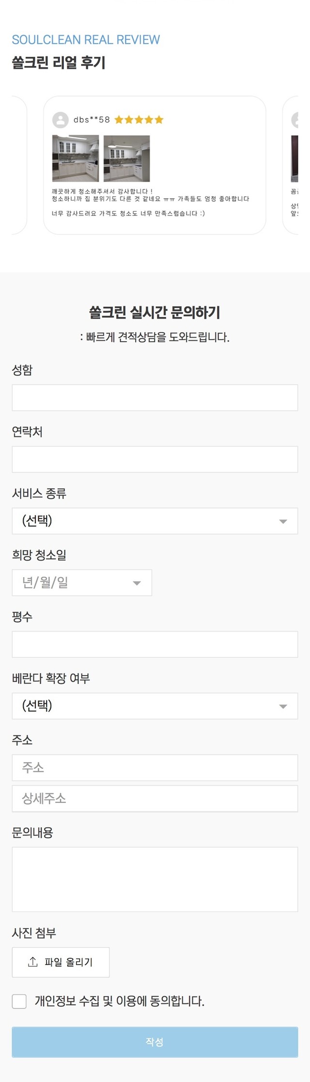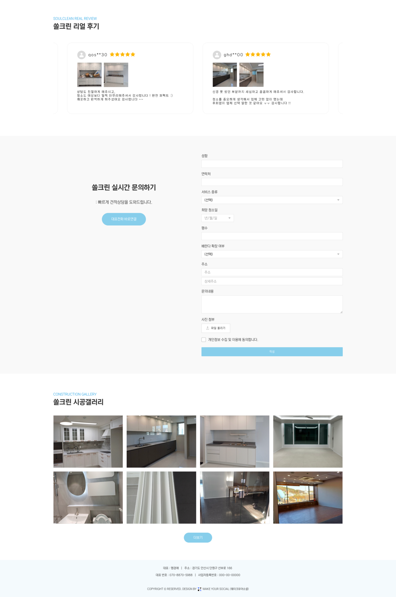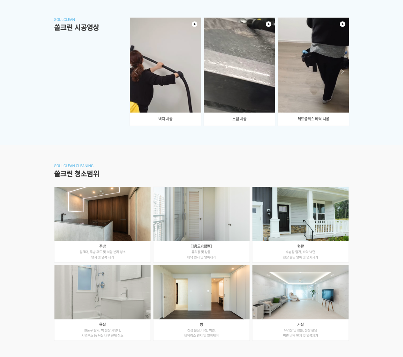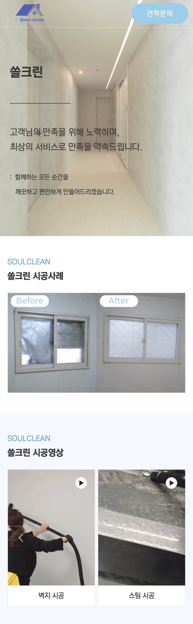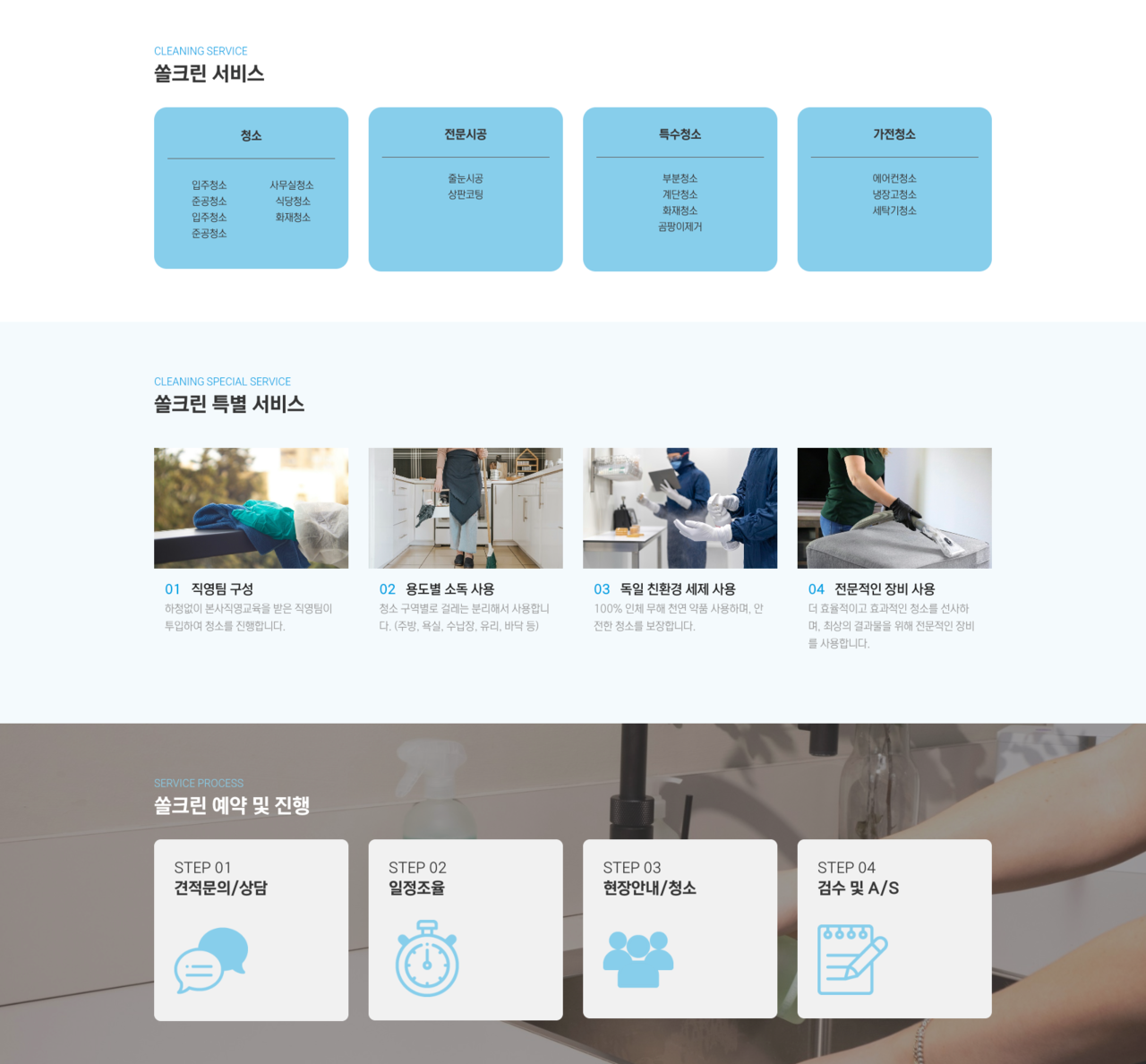 웹사이트는 고객이 필요한 청소 유형을 빠르게 파악하고 문의