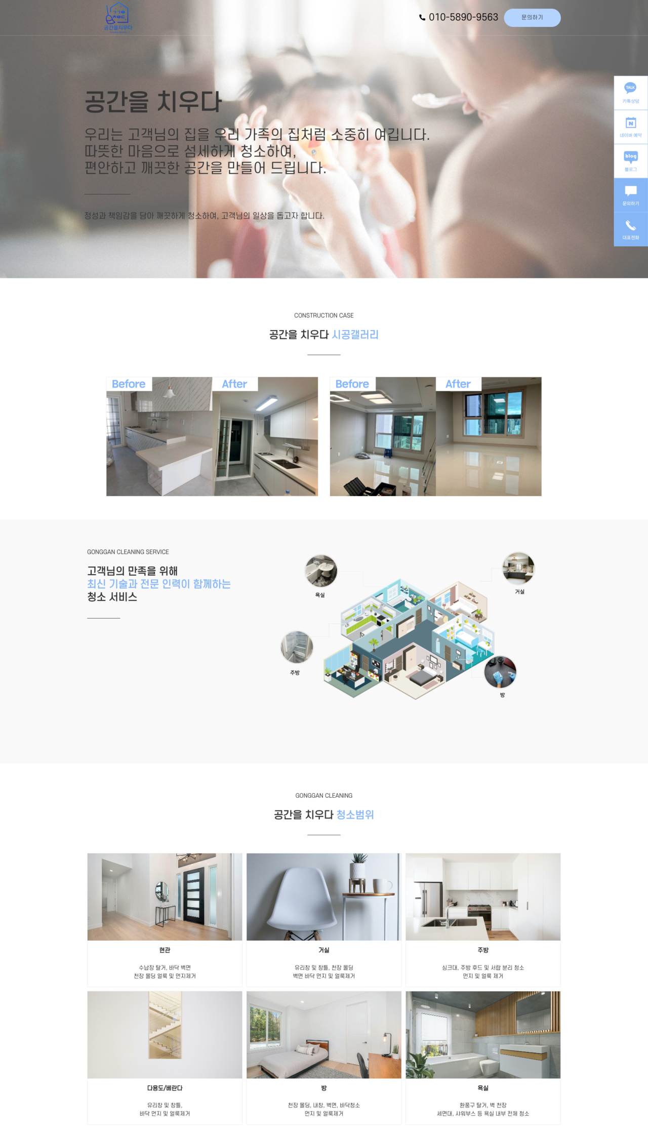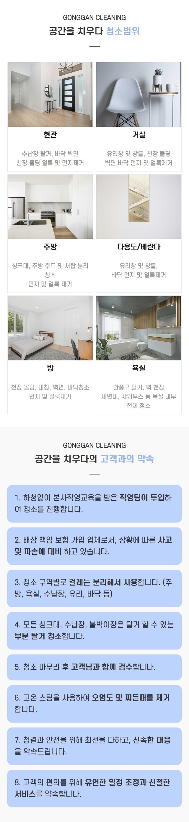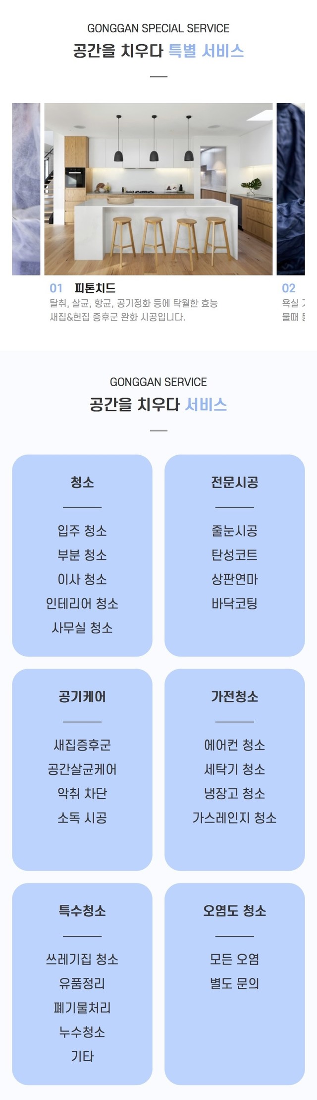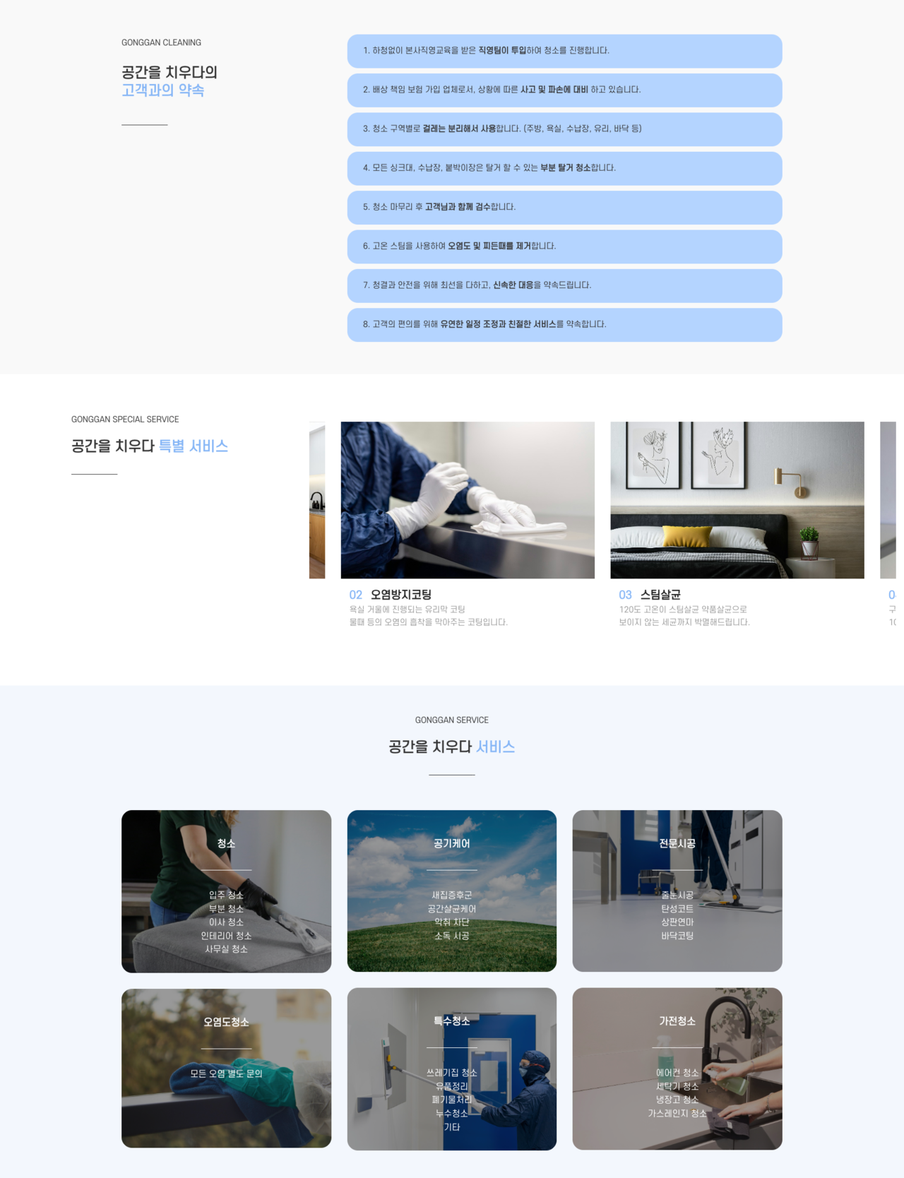 청소, 공기케어, 전문시공, 오염방지코팅, 특수청소, 가정청소 등